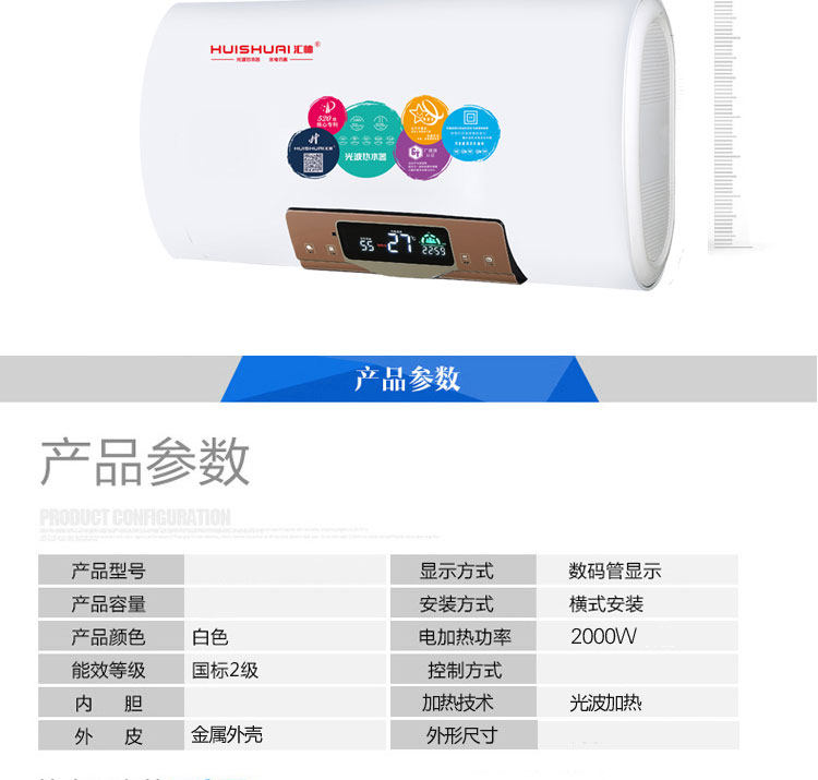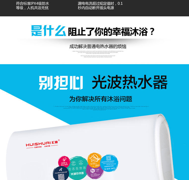 D901 超薄扁桶电脑 汇帅光波热水器 水电隔离 远红外杀菌 不结水垢
