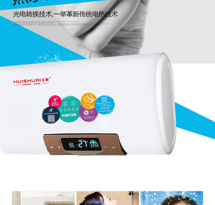 D906 超薄扁桶电脑 汇帅光波热水器 水电隔离 远红外杀菌 不结水垢