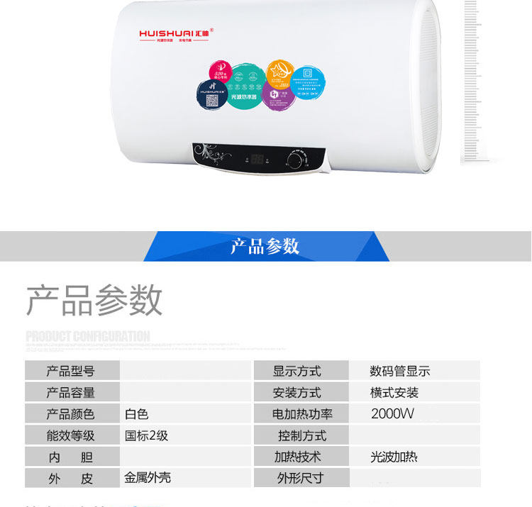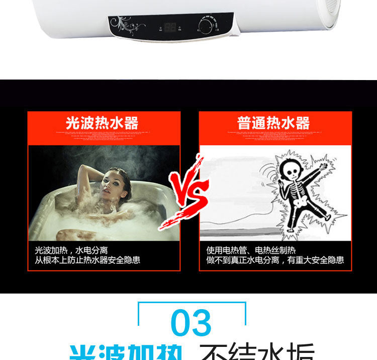 D120 超薄扁桶数显 汇帅光波热水器 水电隔离 远红外杀菌 不结水垢
