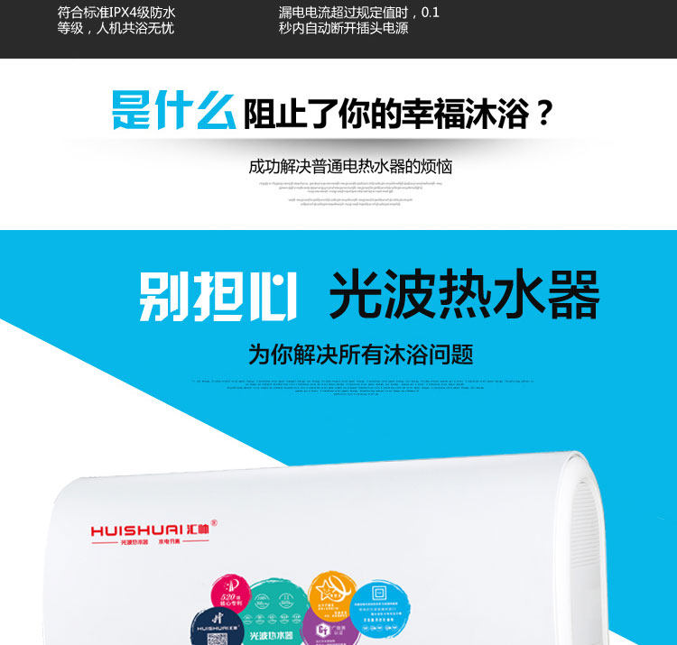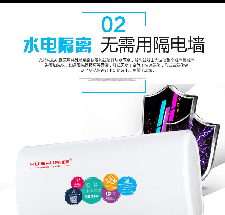D121 超薄扁桶智能款 汇帅光波热水器 水电隔离 远红外杀菌 不结水垢 手动与手机APP无线WiFi控制